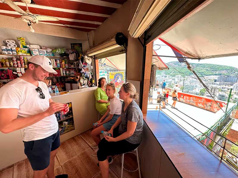 Ao chegar, o passeio na Favela Santa Marta inclui a utilização do Teleférico de Santa Marta, que leva os visitantes ao topo da comunidade. Lá, você será presenteado com uma das melhores vistas panorâmicas do Rio de Janeiro, incluindo o Cristo Redentor, o Pão de Açúcar, a Praia de Botafogo e a Lagoa Rodrigo de Freitas.